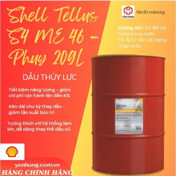 Shell Tellus S4 ME 46 là dòng dầu thủy lực cao cấp được phát triển nhằm tối ưu hiệu suất, giảm tiêu hao năng lượng và kéo dài tuổi thọ hệ thống. Sản phẩm hiện đang được Công Ty TNHH Thương Mại Yên Hưng – nhà phân phối chính thức của Shell tại Việt Nam – cung cấp với đầy đủ giấy tờ CO, CQ và cam kết hàng chính hãng 100%.